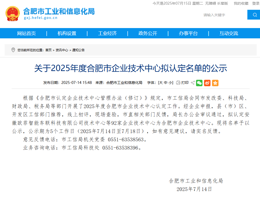 近日,依據(jù)《合肥市認定企業(yè)技術(shù)中心管理辦法(修訂)》相關(guān)規(guī)定,合肥市工業(yè)和信息化局聯(lián)合市發(fā)展和改革委員會、科學(xué)技術(shù)局、財政局、稅務(wù)局等部門組織開展了 2025